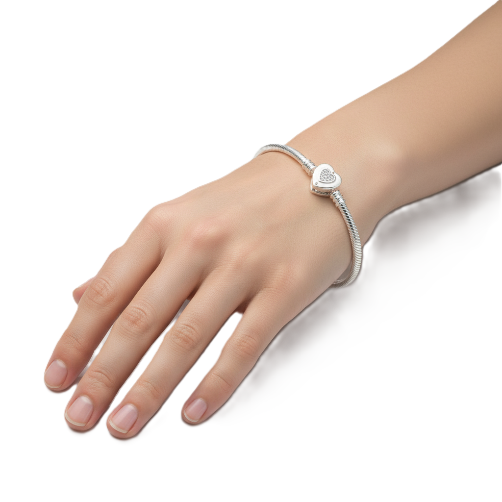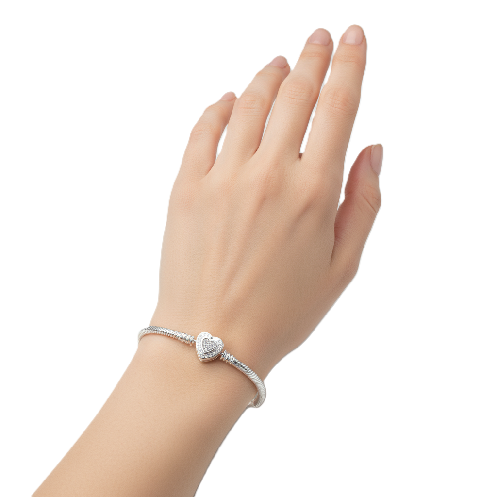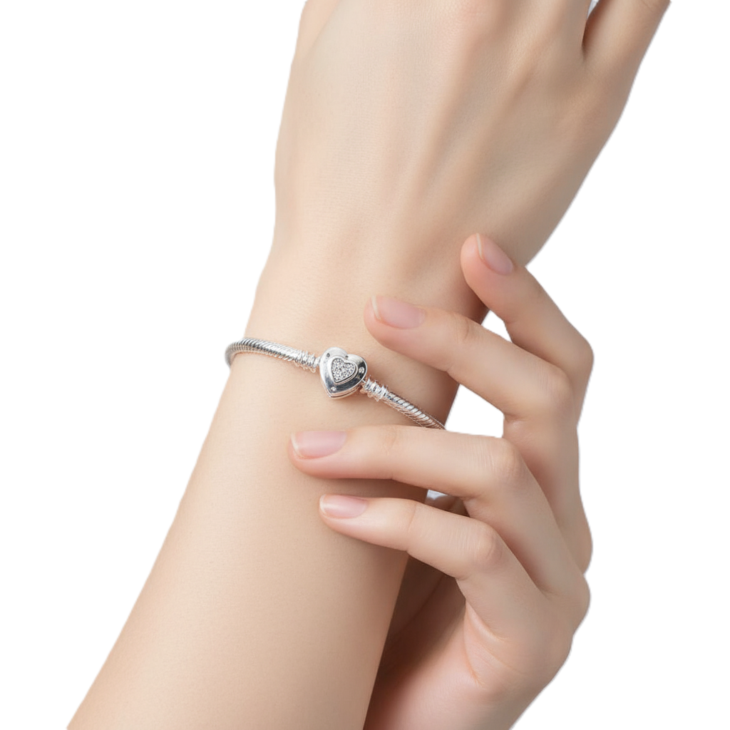 The bracelet is secured with an elegant and eye-catching heart-shaped clasp. This unique clasp not only provides a secure lock but also serves as a beautiful decorative element itself.
