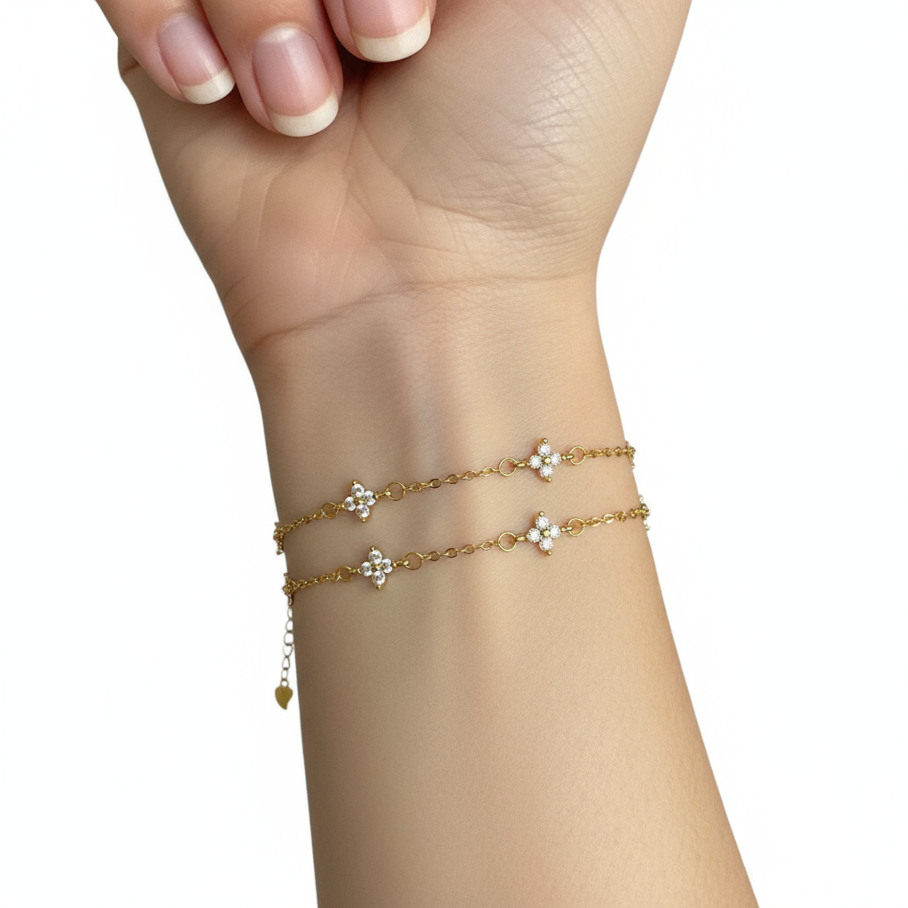 Delicate Four-Leaf Clover Station Bracelet