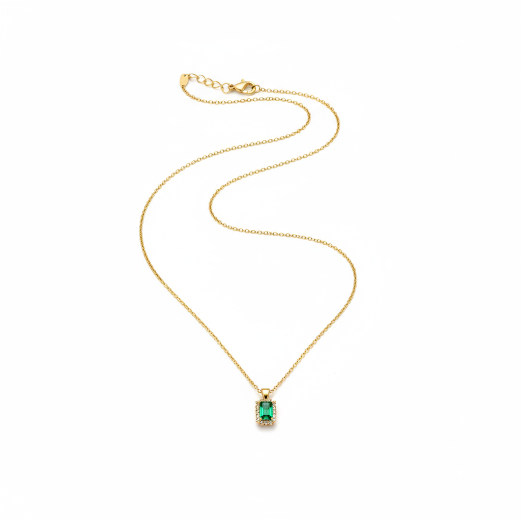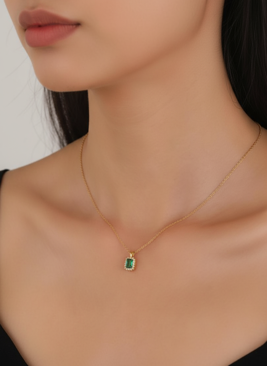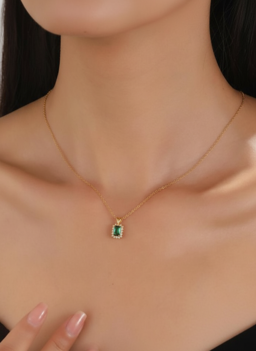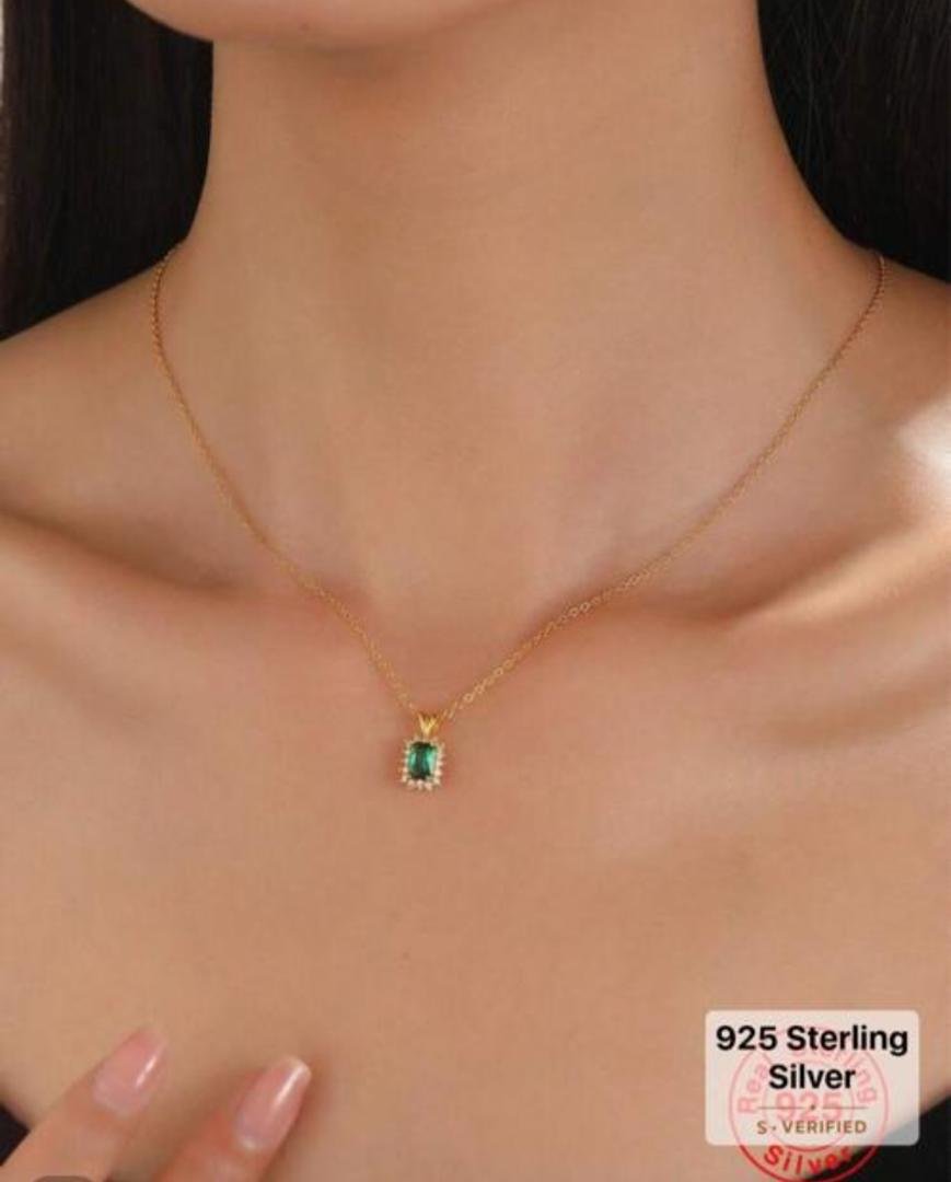 luxury gold plated 925 silver necklace | large emerald cut green zirconLuxury Large Emerald Cut Green Zircon