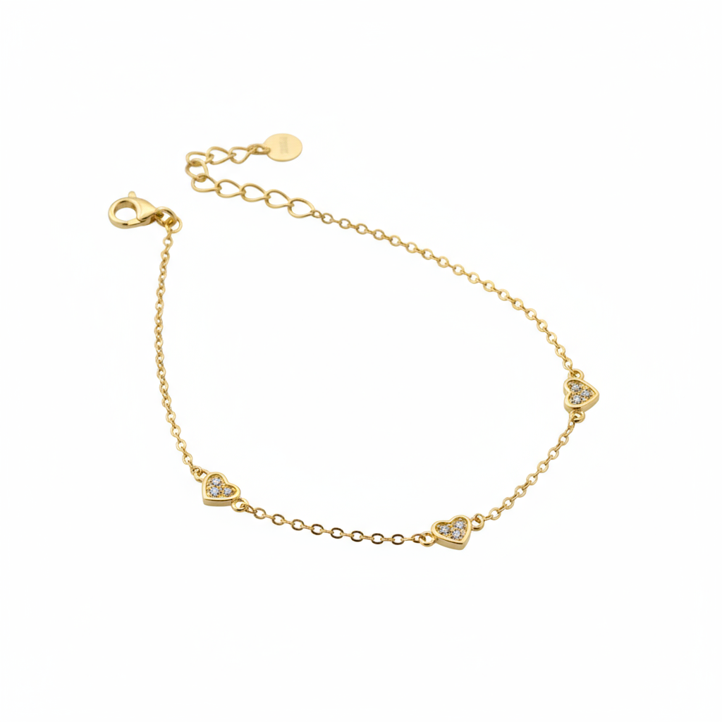 dainty gold plated 925 sterling silver three heart station braceletDainty Three Heart Station Bracelet